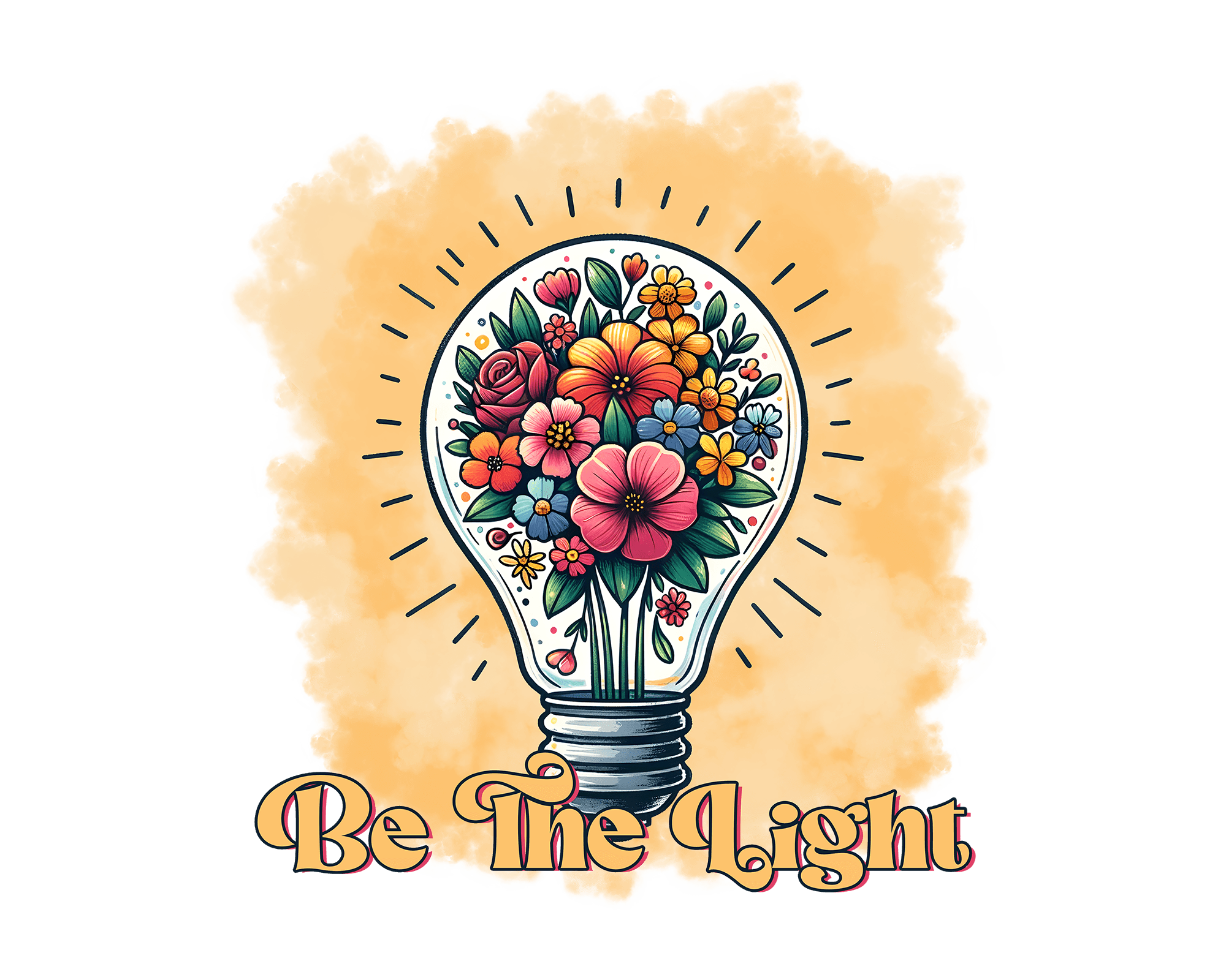 Be the Light. with lightbulb and yellow background