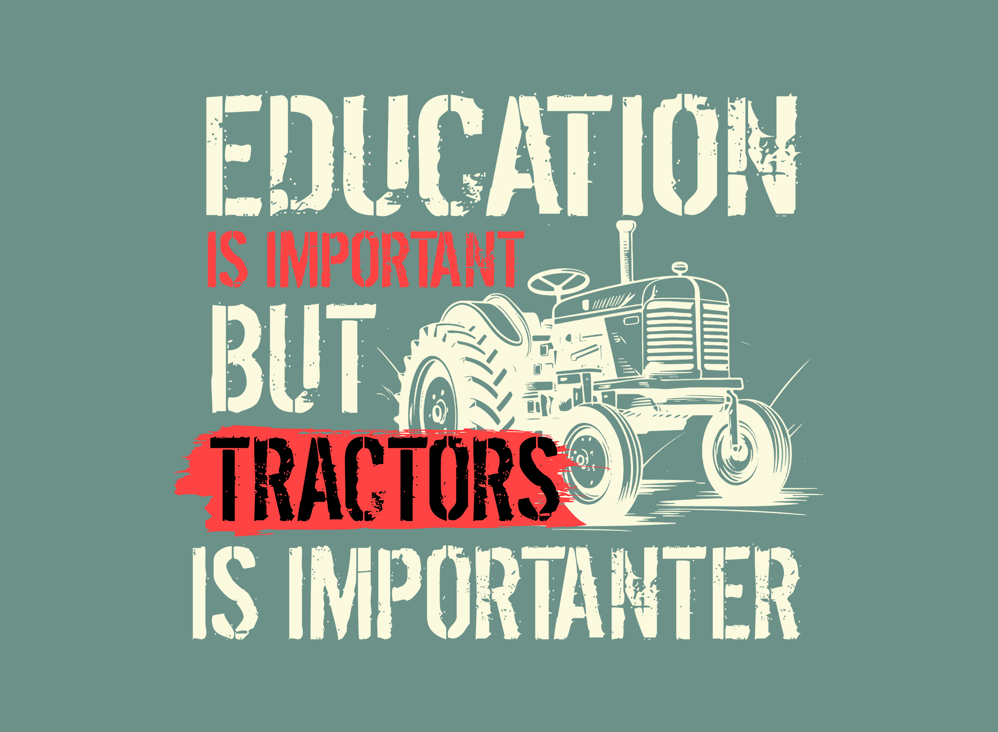 Education is important, but tractors are importanter. with picture of a tractor