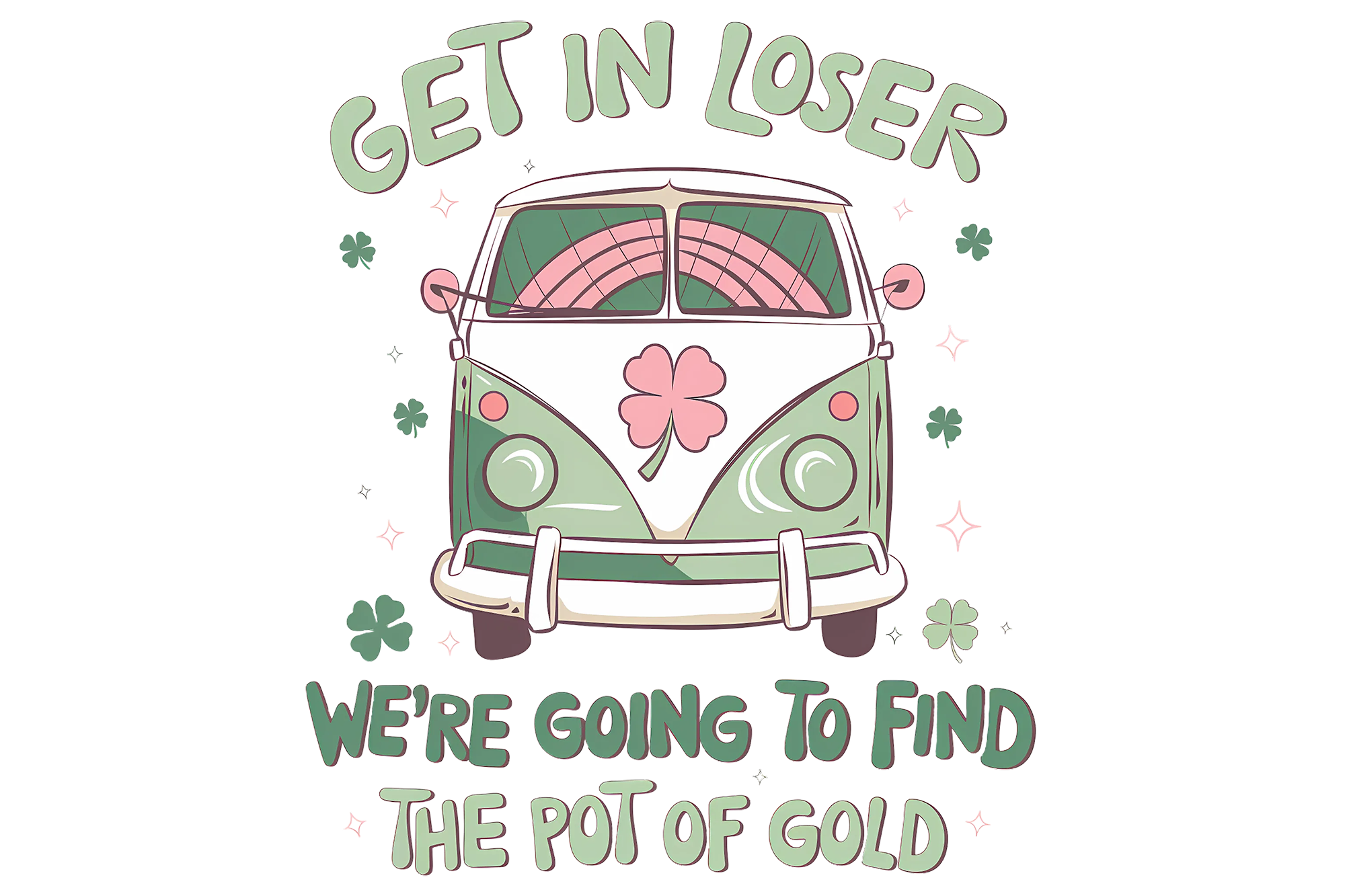 Get in Loser. We are going to find the pot of gold with green and white van in center