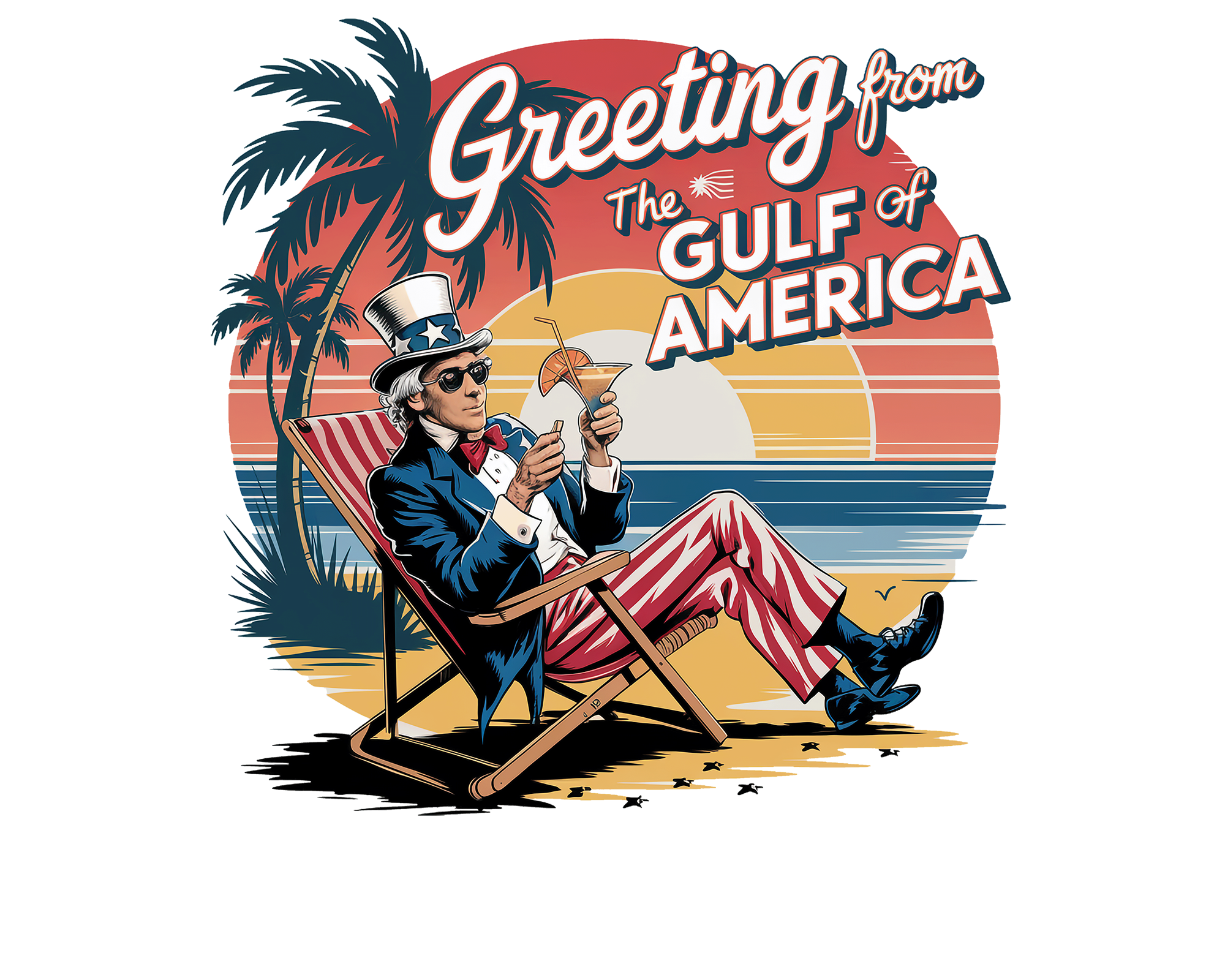 Greeting from the Gulf of America. Abe Lincoln sitting on the beach
