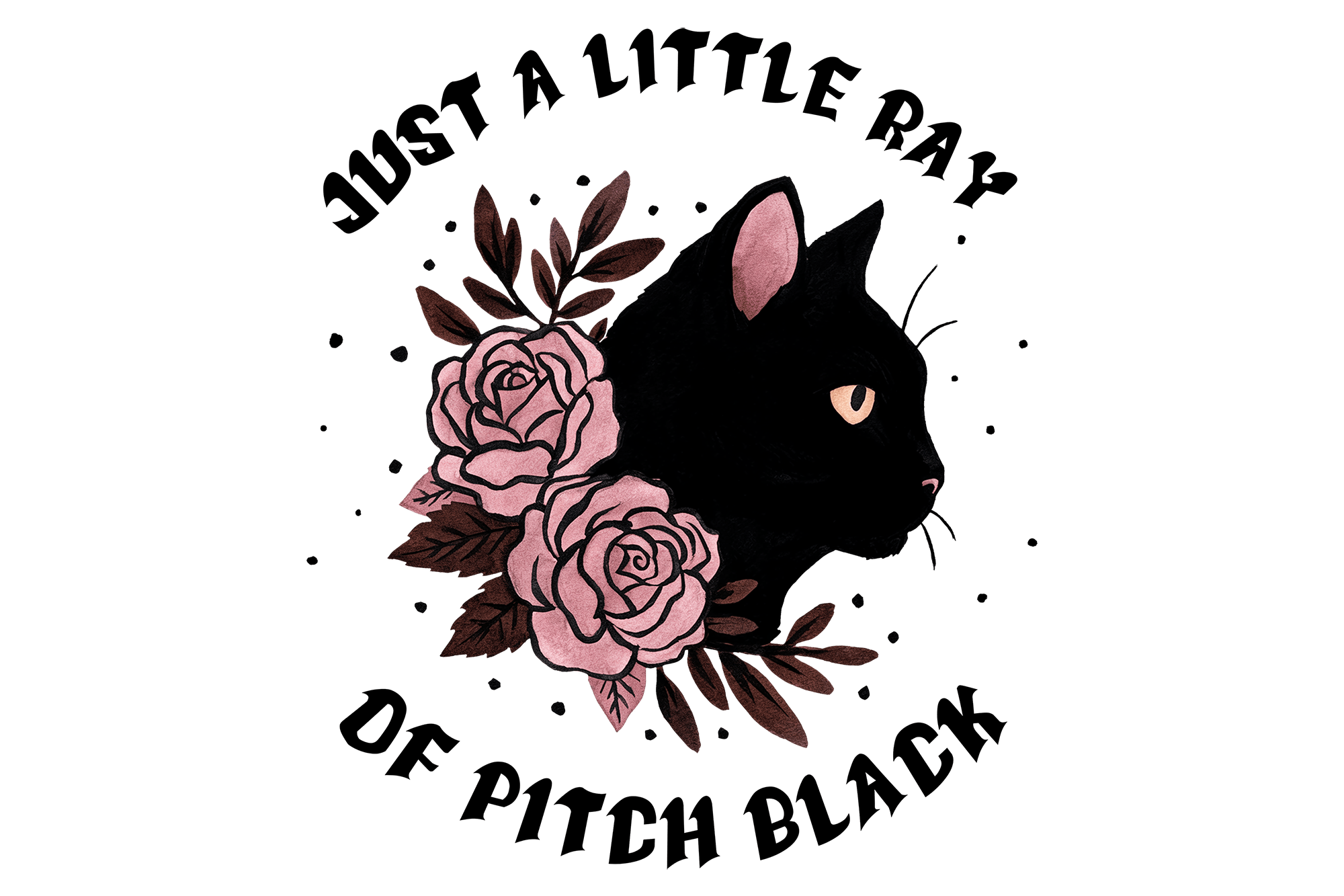 Just a little ray of pitch black. with black cat and roses in center