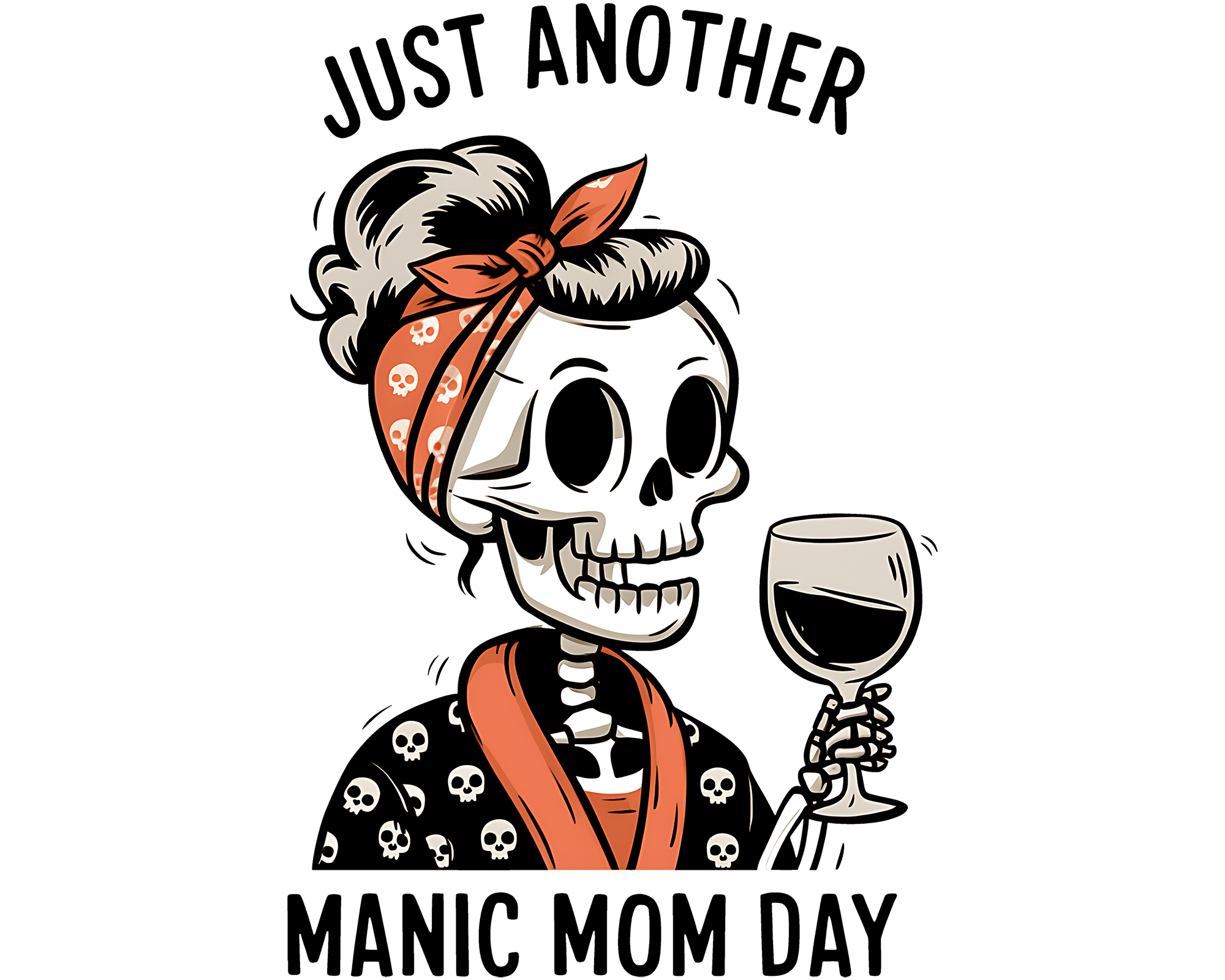 Just Another Manic Mom Day with skelly drinking wine
