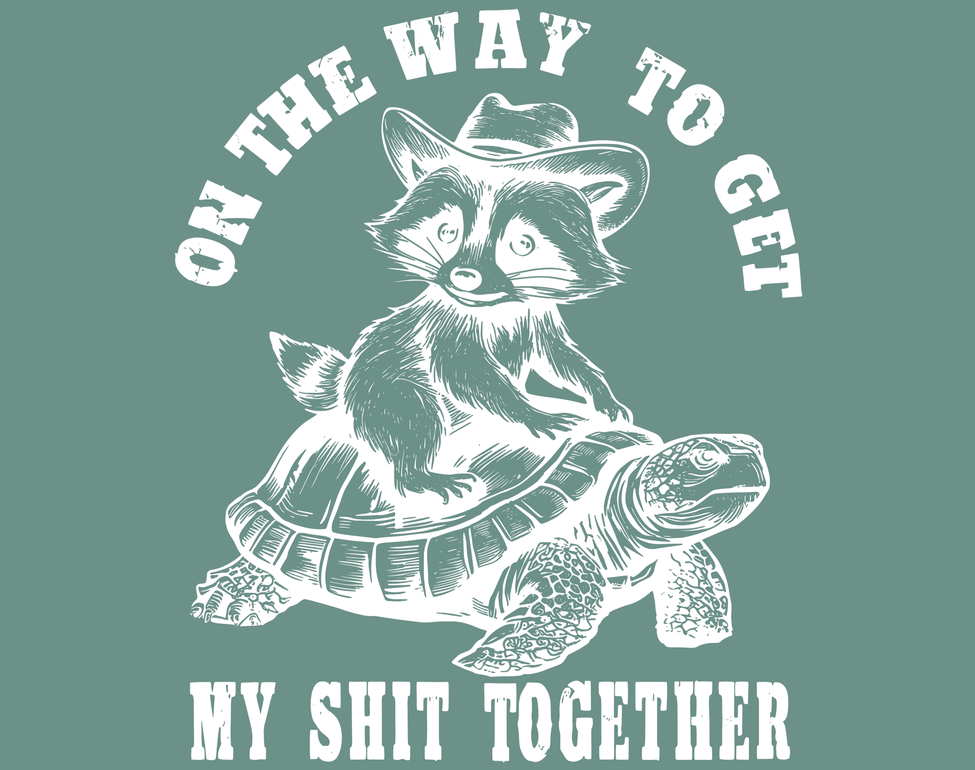On the way to get my shit together with raccoon riding a turtle