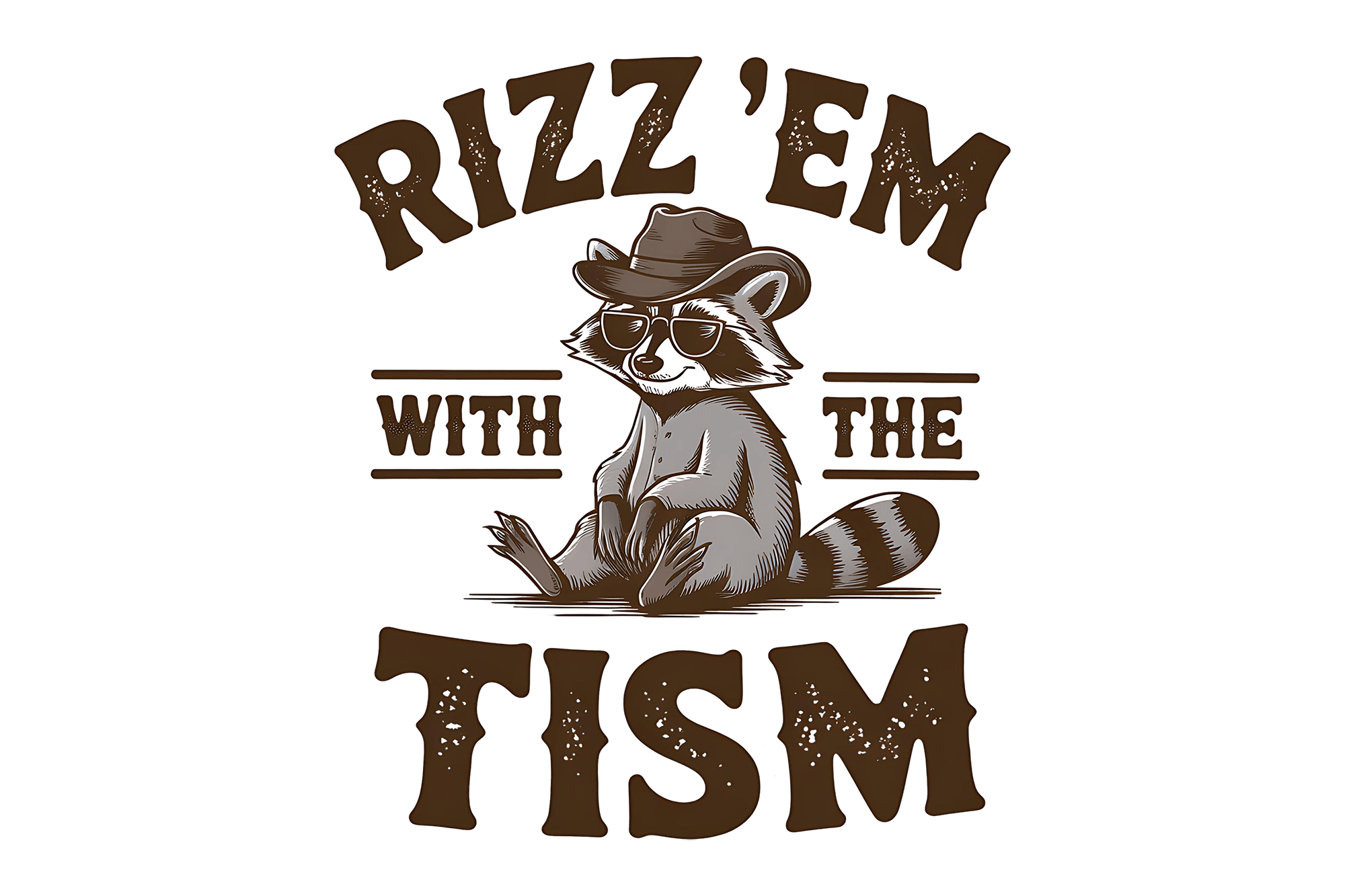 Rizz’ Em with the Tism with raccoon sitting in center