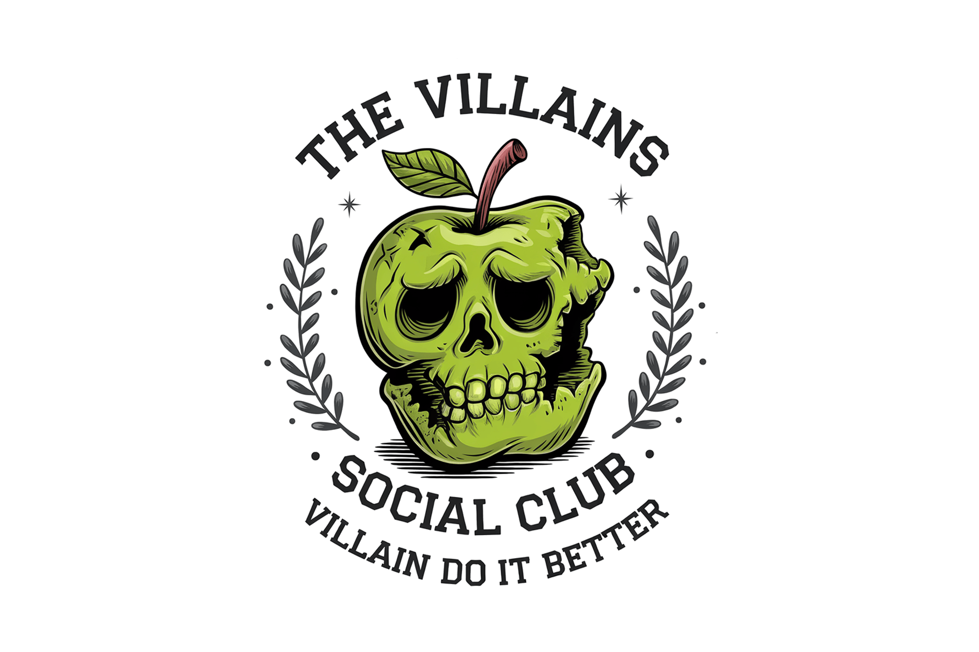 The Villains Social Club with green apple skull