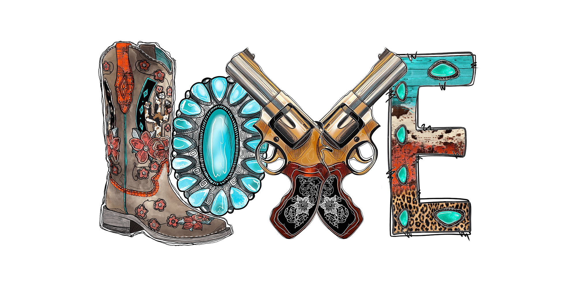 Western Love with gun boot and gem